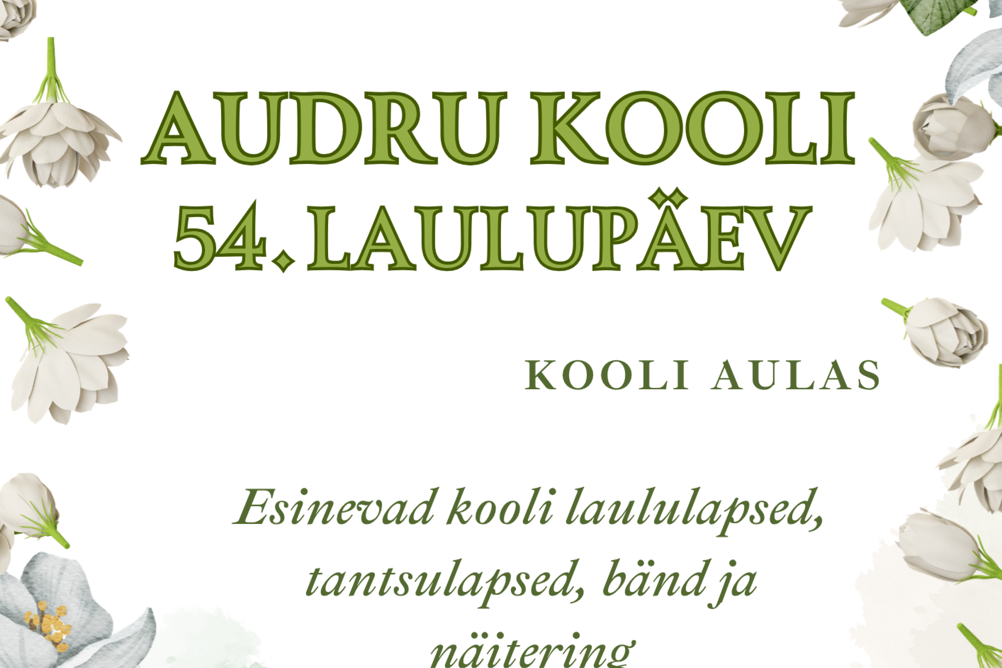 Anname juba varakult teada, et Audru koolis on tulemas üks väga eriline õhtu. Reedel, 15. mail kell 18 toimub kooli aulas Audru kooli 54. laulupäev. See on üks meie kooli pikima traditsiooniga üritusi, mis toob igal aastal kokku õpilased, et esineda ja näidata, mida aasta jooksul on õpitud. Laval astuvad üles meie kooli laululapsed, tantsulapsed, bänd, näitering ja paljud teised. Oodata on mitmekesist ja rõõmsat kava, kuhu iga õpilane ja õpetaja annab oma panuse.