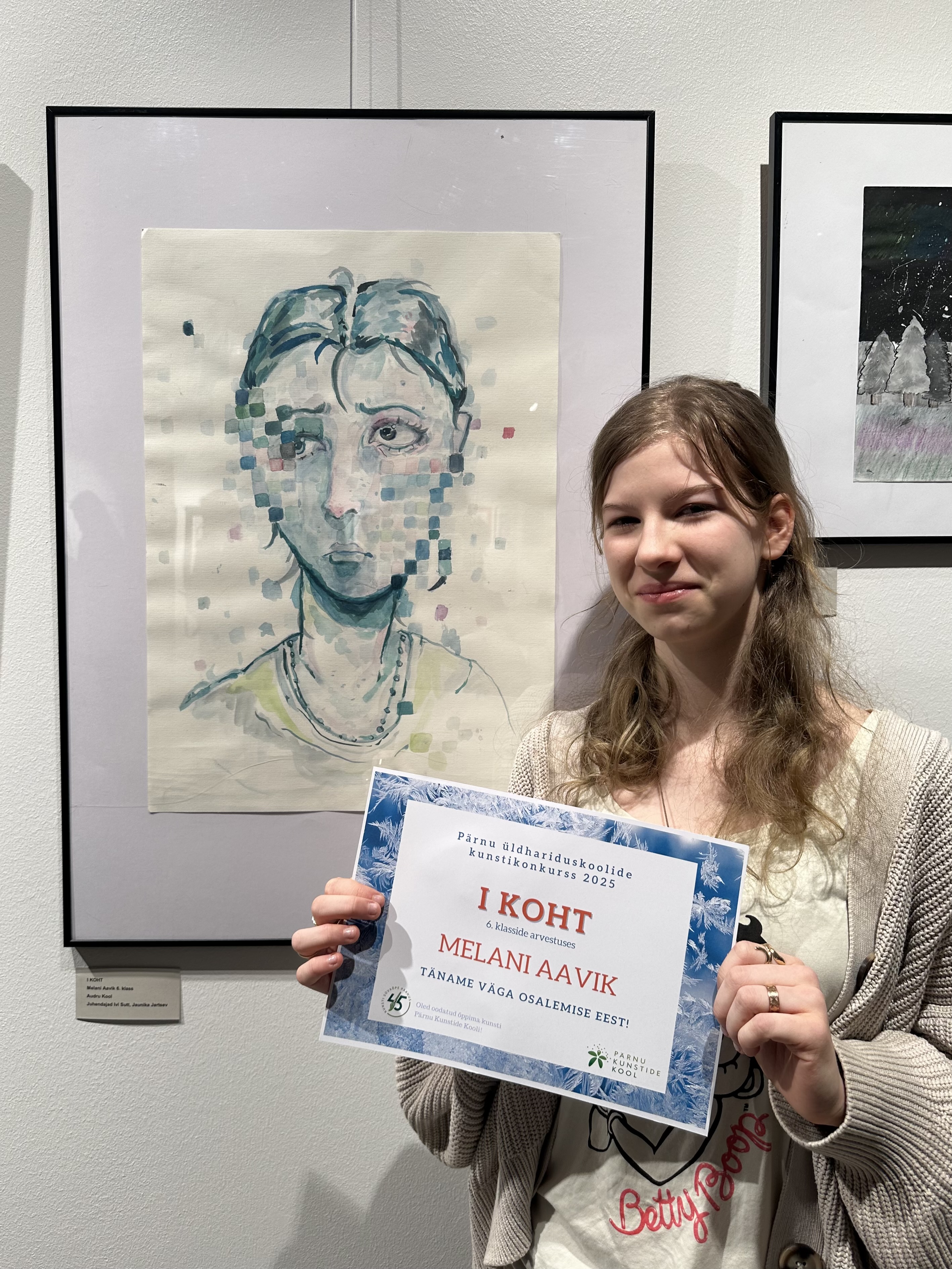 Pärnu üldhariduskoolide kunstikonkurss 2025 6. klasside arvestuses I koht Melani Aavik. Juhendajad Jaunika Jartsev ja Ivi Sutt. Auhinnatud tööd on väljas Pärnu Kontserdimaja galeriis veebruari lõpuni.